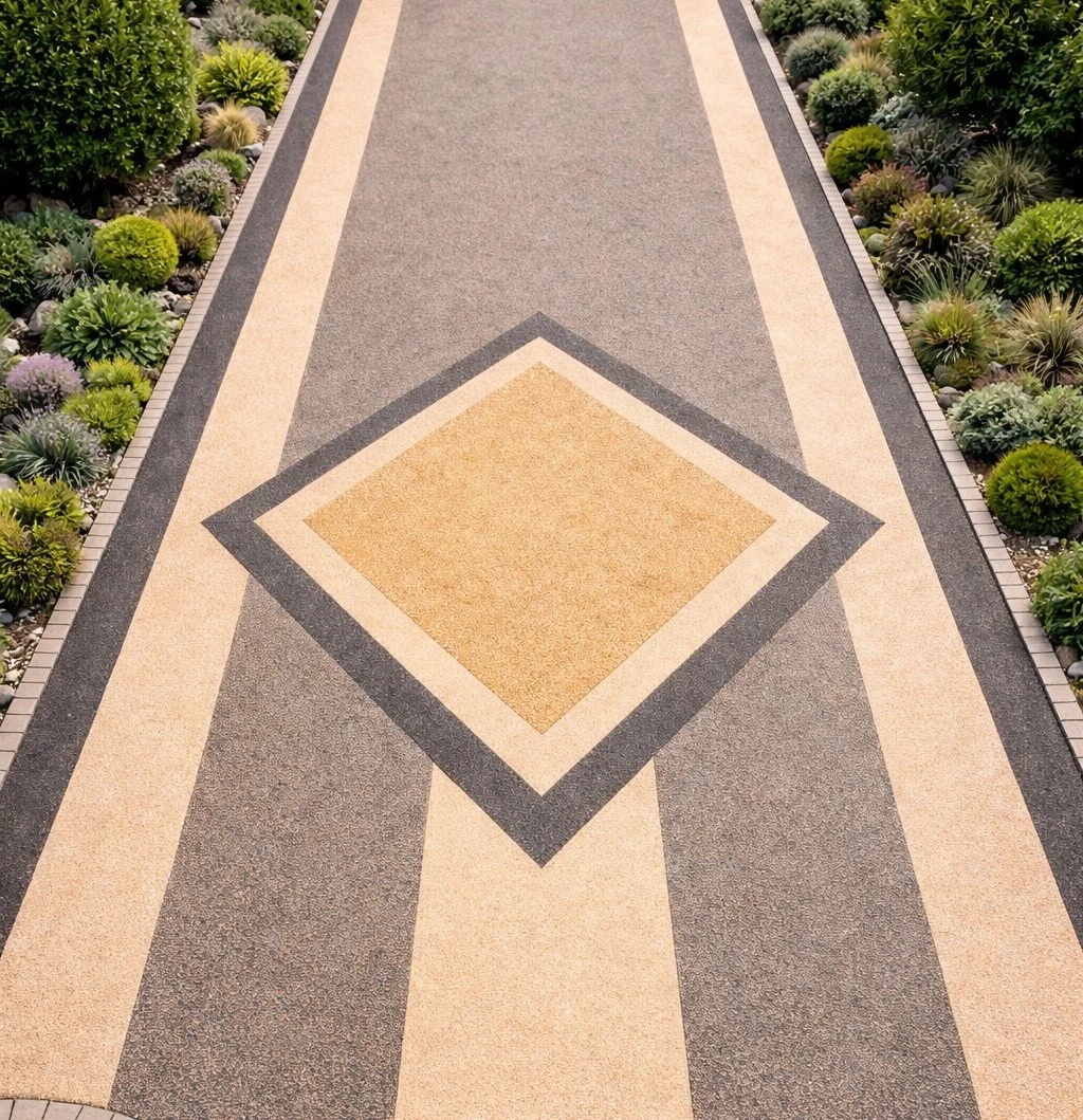 Customisable value: From subtle stone blends to striking bespoke patterns and borders, resin-bound surfacing adds kerb appeal and can increase property value.